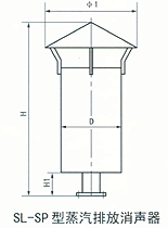 注:本系列消声器额定排汽压力按1.3MPa设计的,如排汽压力为0.8MPa,选用消声器应比排放管径大一级选用:排汽压力为2.0MPa时应比排放管小一级选用。