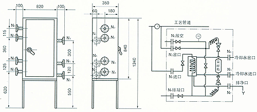 ④SCXL—Ⅱ气体在线式采样器■适用范围:适用于无颗粒、不凝结、不结晶的各种气体介质的采样。 使用温度:-20—425℃,工作压力:0-6.4Mpa■使用方法: (1)先将贮气袋的采气接管插入采样器的采气接头中