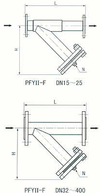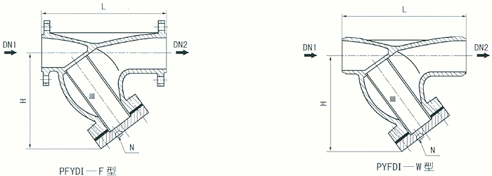 (3)Y型铸造异径法兰连接式(PFYDI一F型)、异径对焊连接式(PYFDI—W型)(DN40×32-250×200,PN≤5.OMPa)